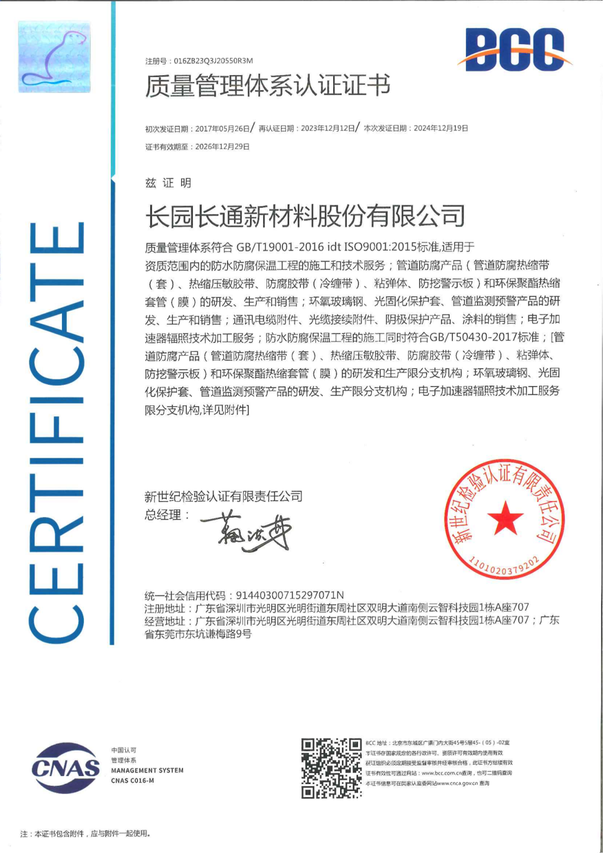 质量管理体系认证证书