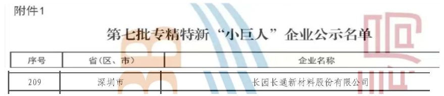 近日,工业和信息化部公示第七批专精特新 “小巨人” 企业名单,长园长通新材料股份有限公司(以下简称“长园长通”)凭借在新材料领域的深耕积淀与创新实力成功入选,标志着公司在专业化发展、精细化管理、特色化产品及创新能力等方面获得国家级权威认可。